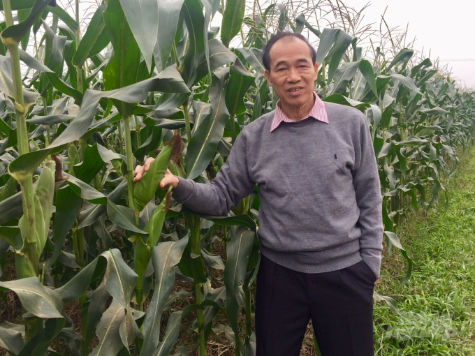 TS Phan Xuân Hào bên giống ngô LVN 4. Ảnh: Nhân vật cung cấp.
