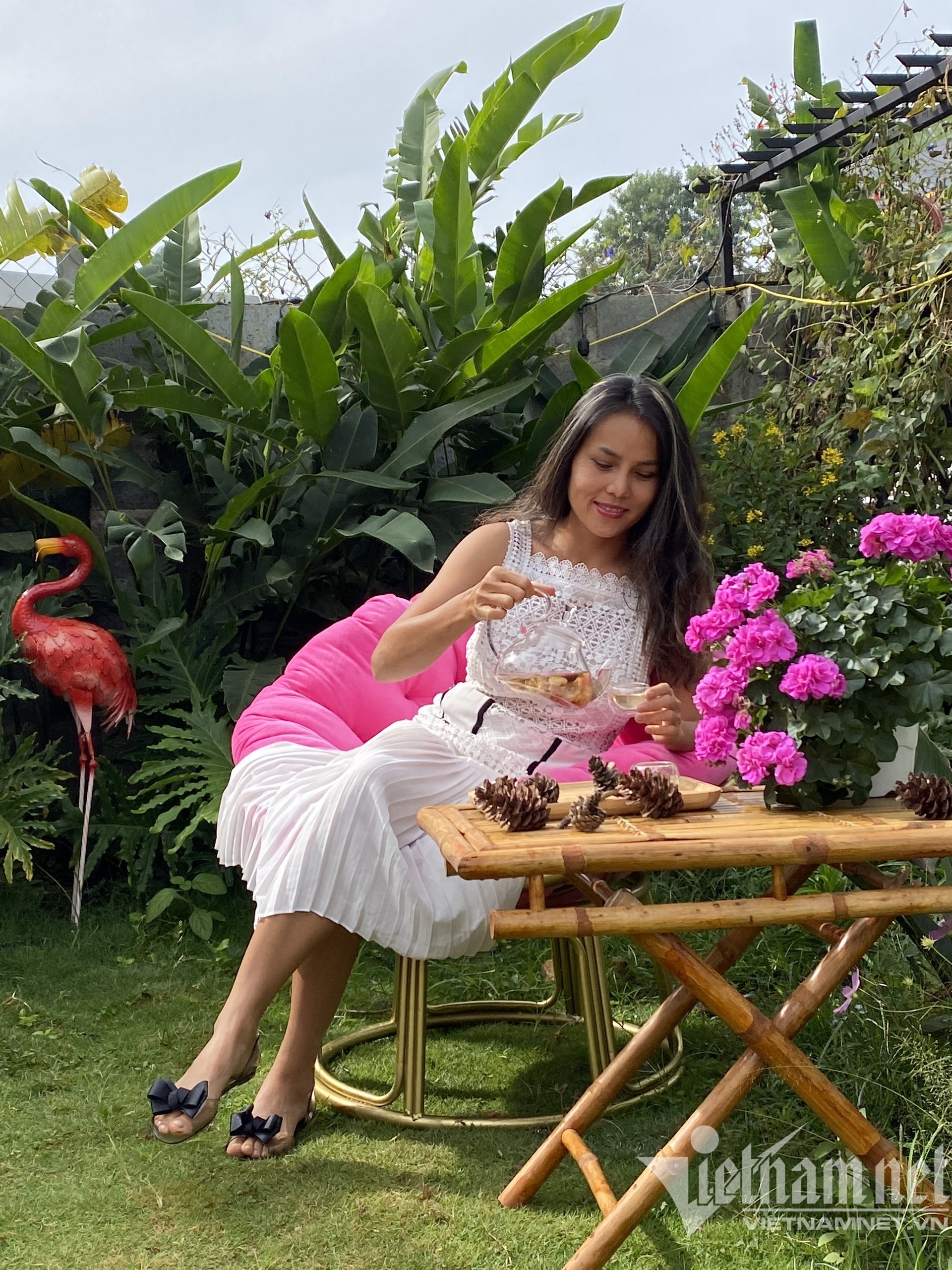 Rời Sài Gòn về quê nhà ở Di Linh, Lâm Đồng sinh sống, chị Phước xây dựng một ngôi nhà nhỏ nhưng phủ rực rỡ cỏ cây, hoa thơm, đẹp như homestay.