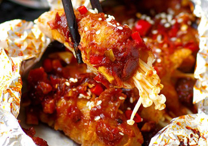 Bò cuộn nấm kim châm nướng giấy bạc