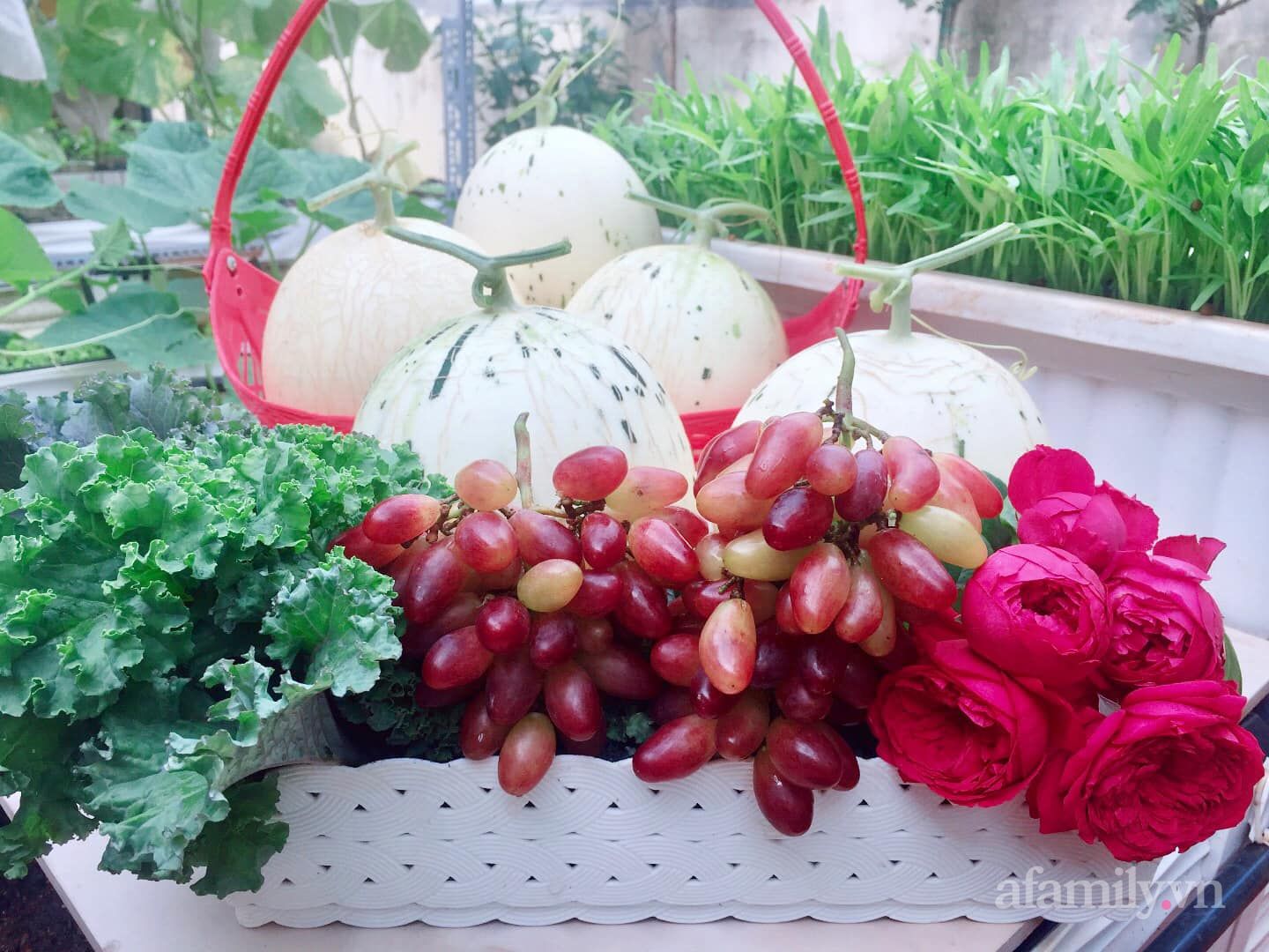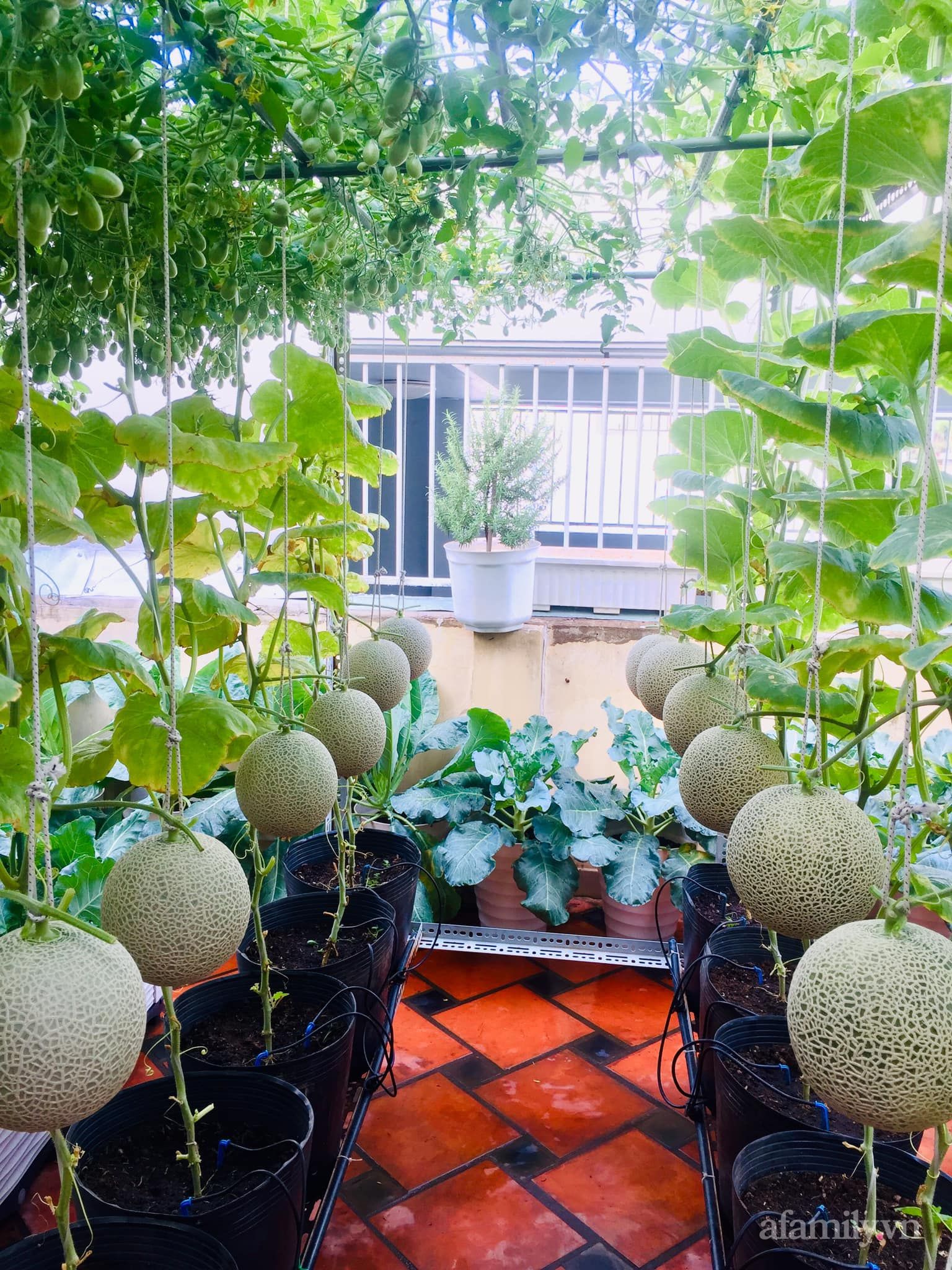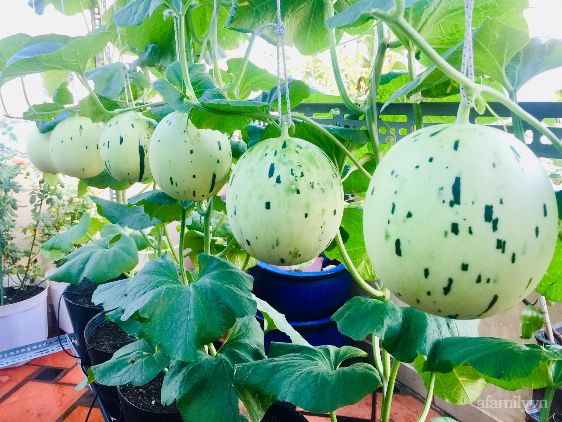 Dưa gang giống Việt được chị Ánh trồng thành công trên sân thượng của gia đình.