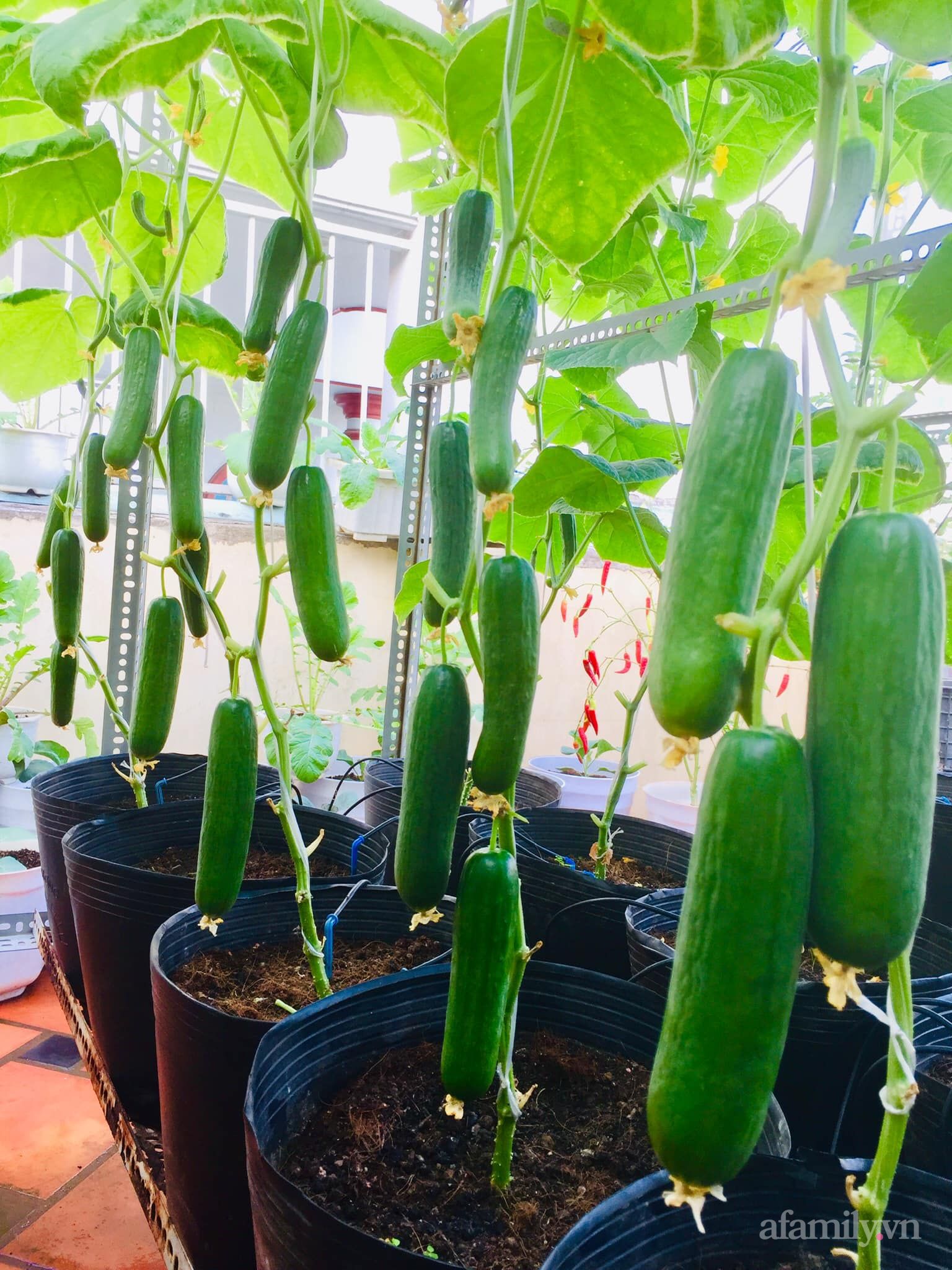 Những loại rau củ quả mát lành được thu hoạch trên sân thượng giúp gia đình chị Ánh thêm đảm bảo sức khỏe trong thời gian phòng dịch. Theo kinh nghiệm của chị Ngọc Ánh, để có được vườn tốt tươi, cần chú ý đến việc lựa chọn hạt giống. Chị thường chọn mua hạt giống F1 từ các trang uy tín, chất lượng. Bên cạnh đó là đất trồng cần sạch mầm bệnh, đầy đủ dinh dưỡng.