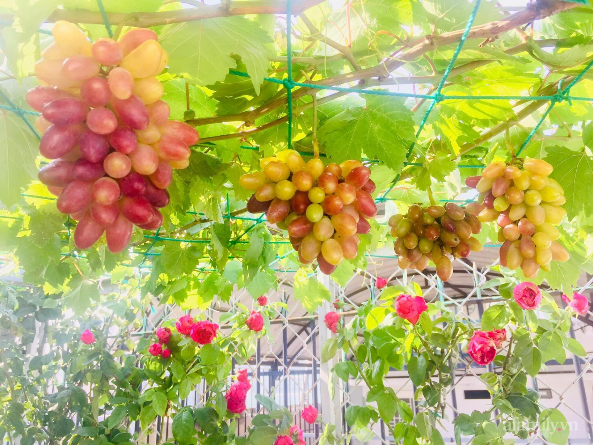 Giàn nho đỏ và nho 152 của chị Ánh cho ra quả tốt um.