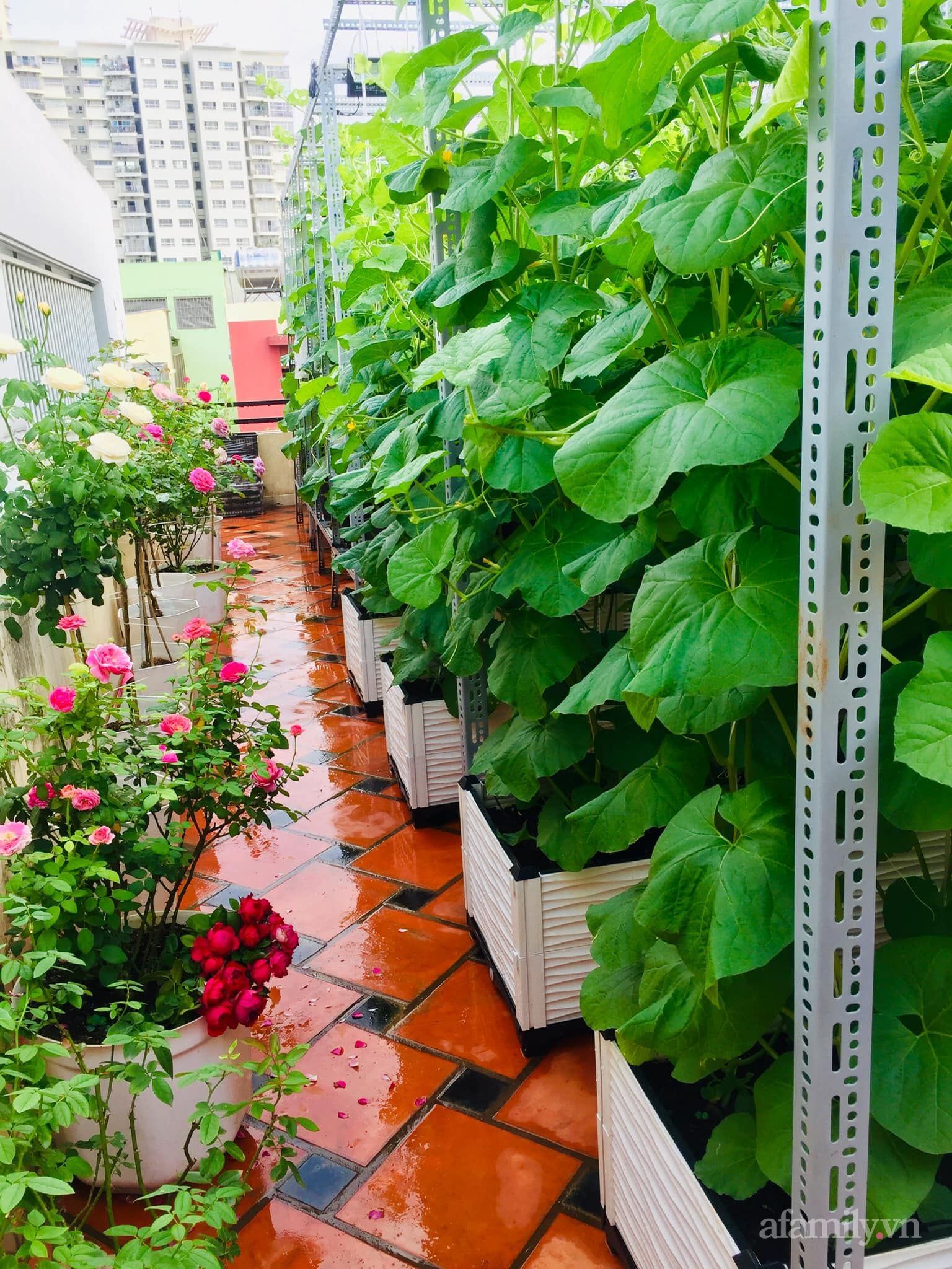 Chị Ánh, chủ nhân của khu vườn này chia sẻ: "Mình mê quá và lên ý tưởng để biến sân thượng nhà mình thành khu vườn xanh. Hành trình làm nông dân sân thượng của mình được hơn 2 năm với rất nhiều niềm vui và chút xíu nỗi buồn vì ban đầu trồng cũng gặp thất bại.