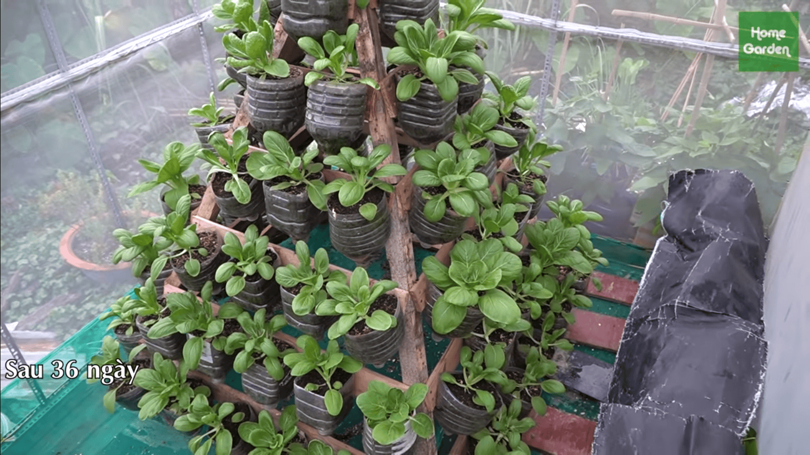 Tái chế chai nhựa trồng tháp rau cải thìa